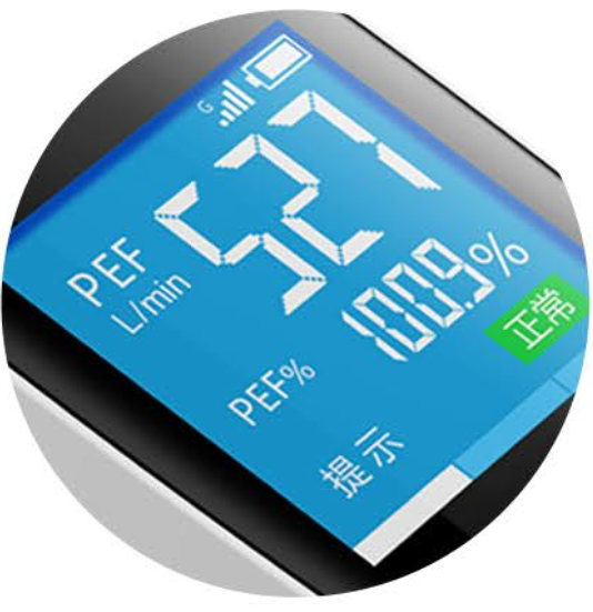 精準(zhǔn)測量肺功能指標(biāo),包括呼氣流量峰值PEF、用力肺活量FVC和第一秒用力呼氣流量FEV1,并通過測量值和預(yù)計(jì)值的比率顯示測試者的狀況。